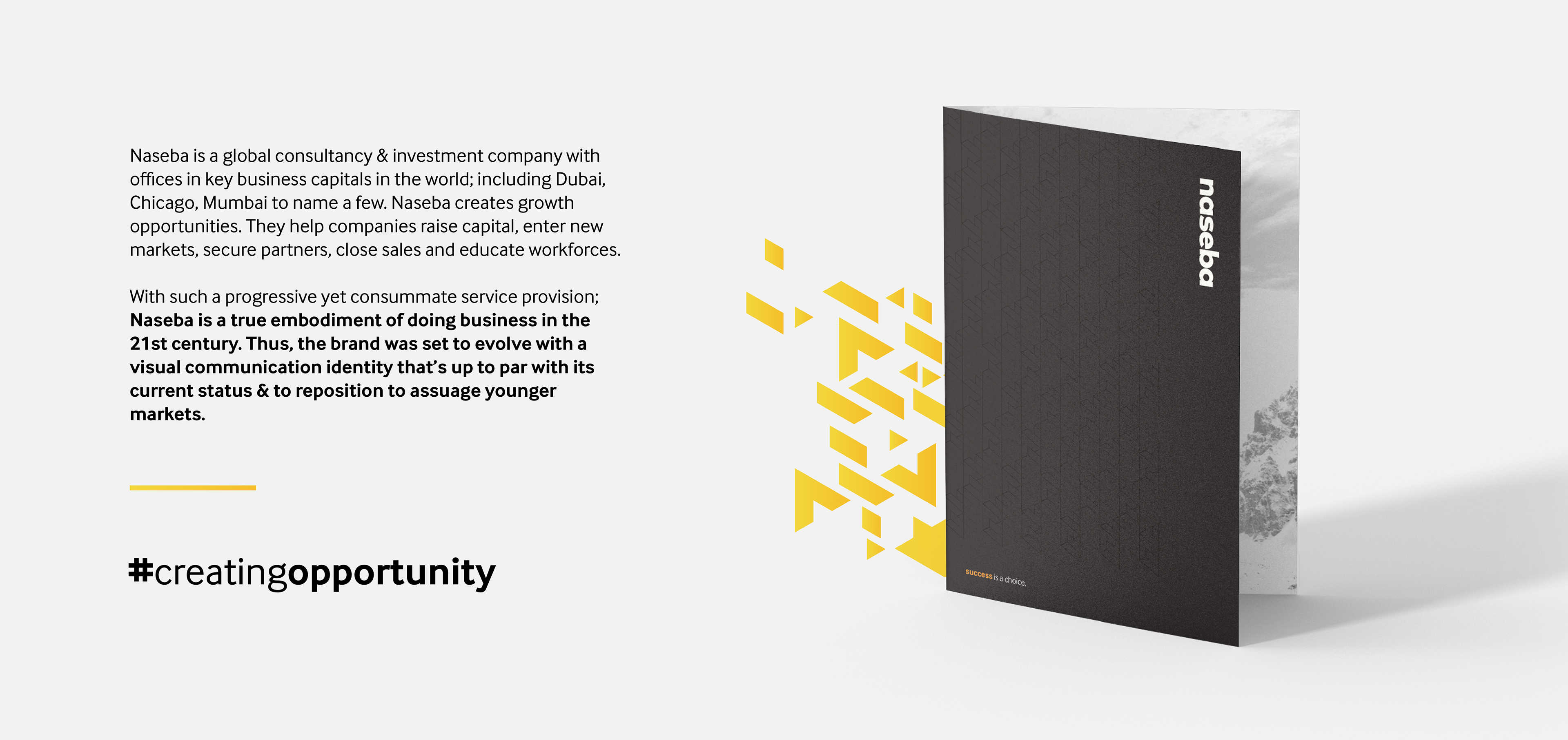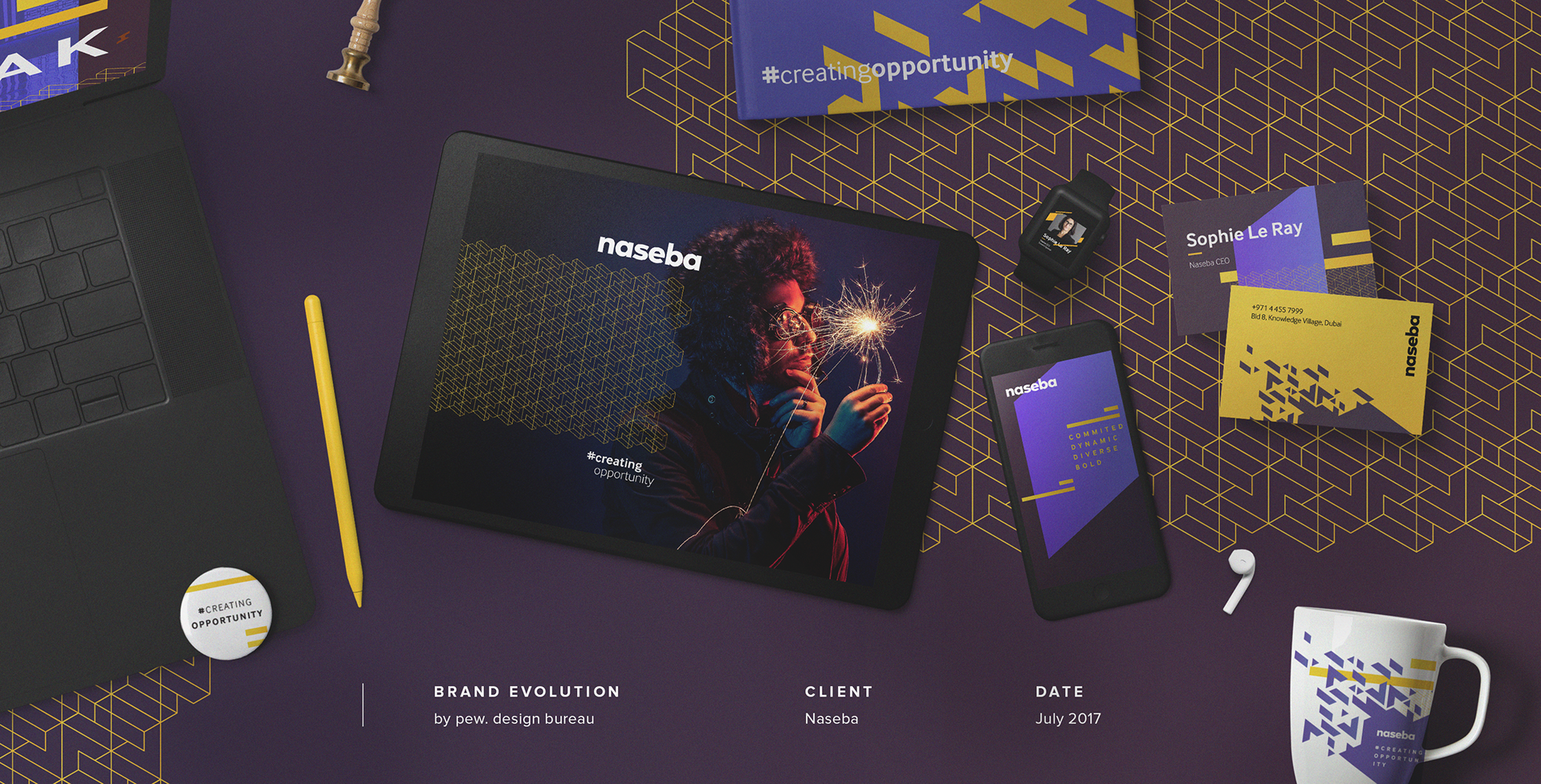pew. were commissioned to add spark and depth to Naseba's existing brand identity, without straying far from the original identity elements.